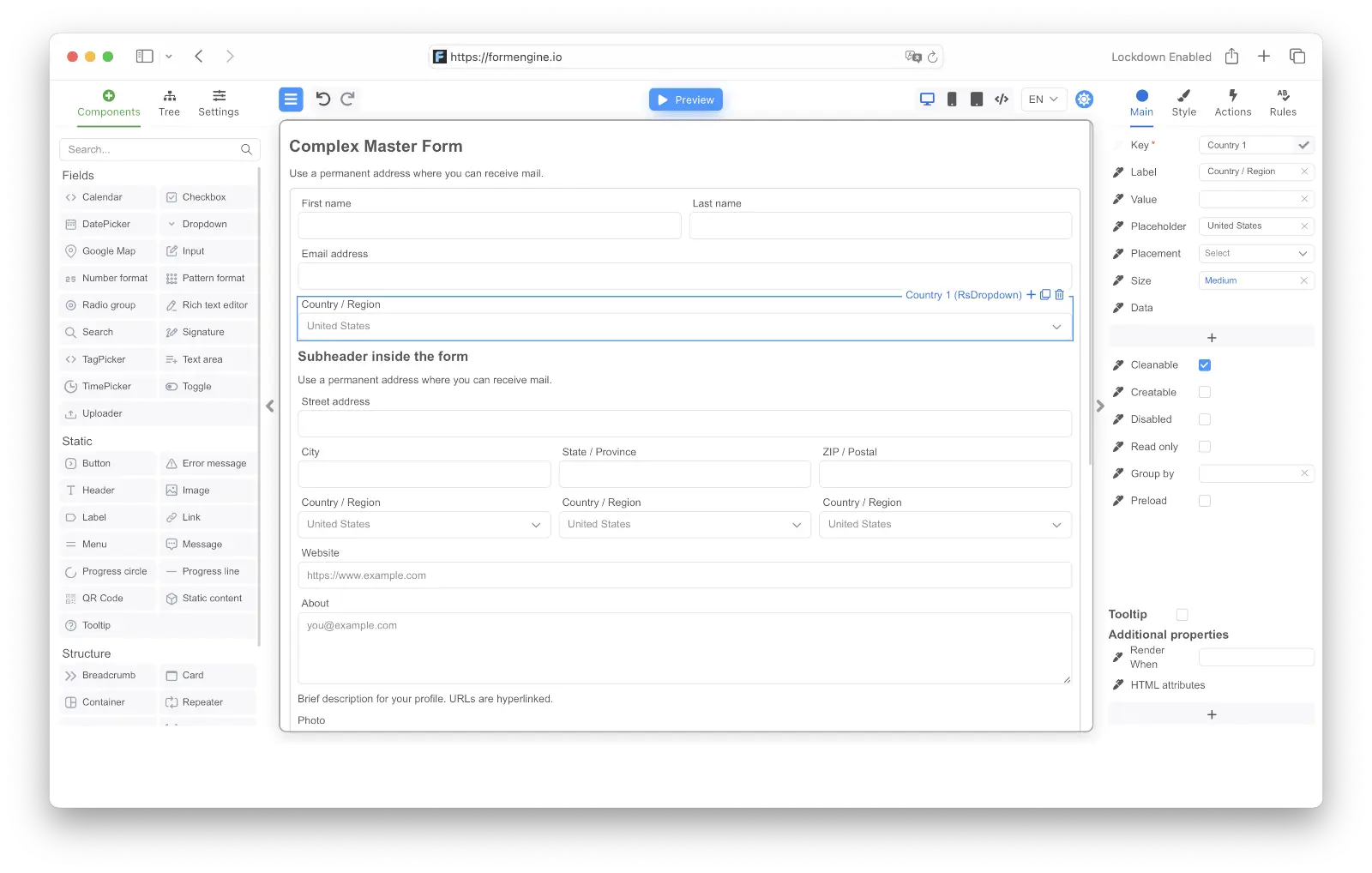 Instantly test how the form behaves during editing. See validation, dynamic behavior, and layouts in real time.